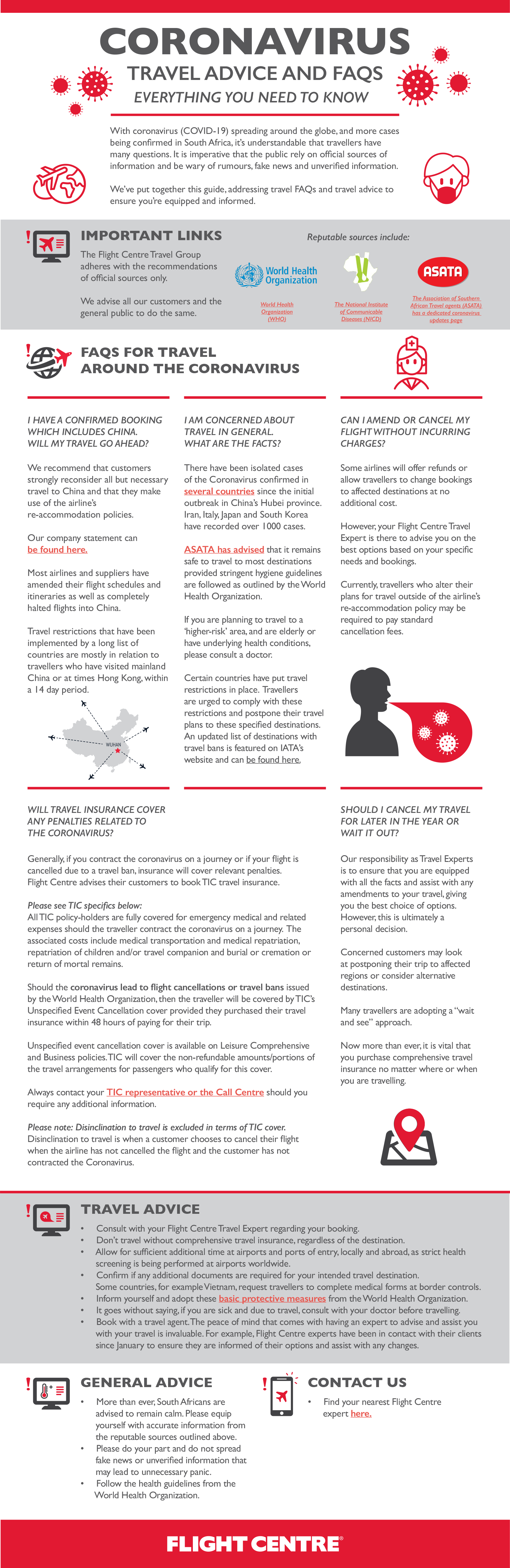 The situation is evolving so rapidly that Flight Centre urges all customers to contact their travel expert with up to date information regarding any confirmed travel bookings.